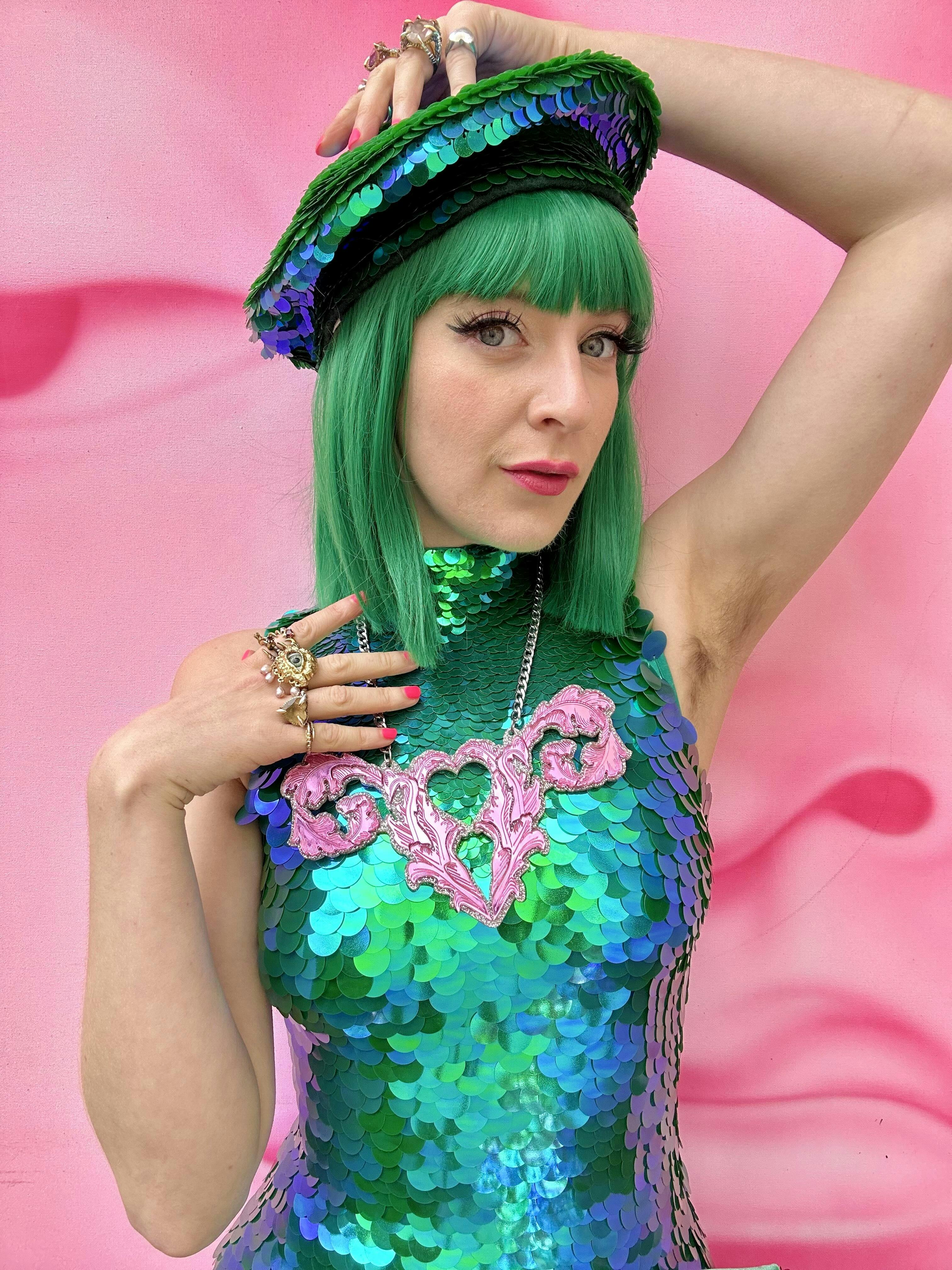 Hundreds of tiny sequins are hand-stitched onto the most timeless hat style of them all. The result: the ultimate beret.
