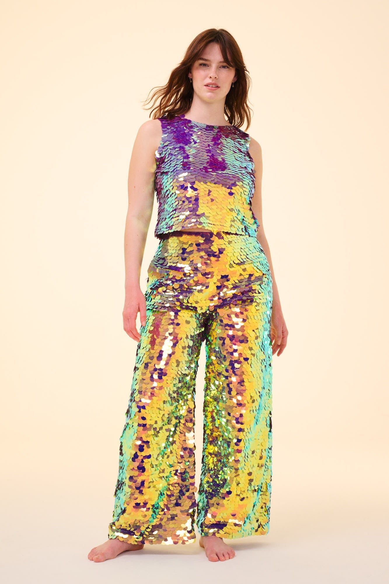 Yes, they are here! The ultimate wide leg, high waist, palazzo style sequin trouser. Pair with any of our sequin tops or jackets for a sequin suit of dreams.