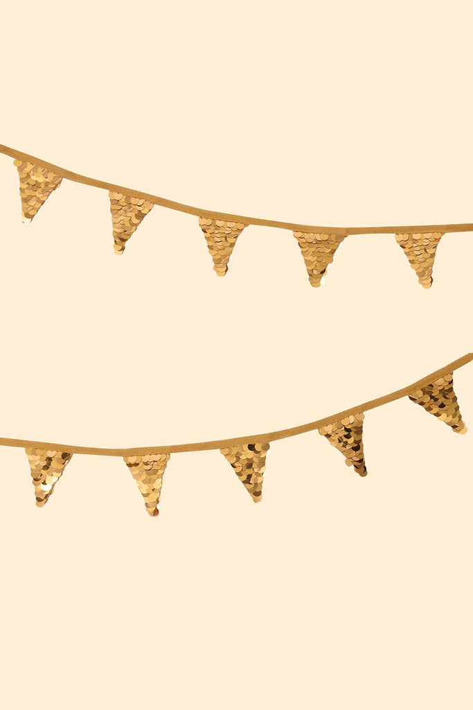 The baby sibling to our sequin bunting: mini triangles hand-embellished with mini sequins.