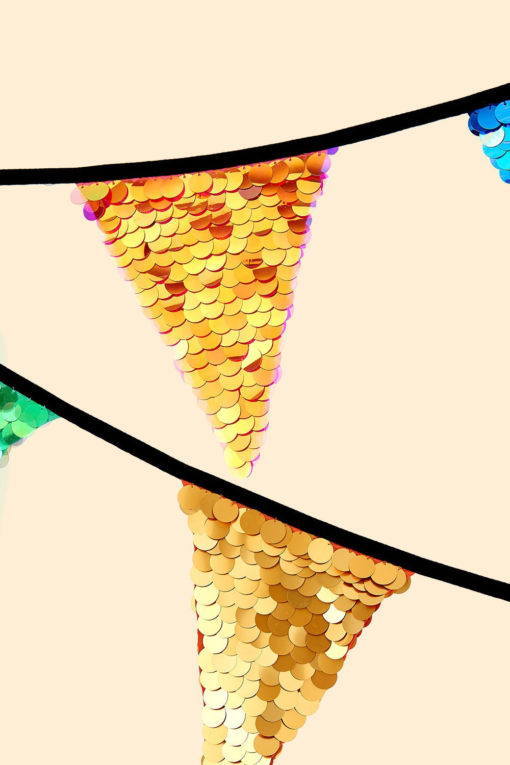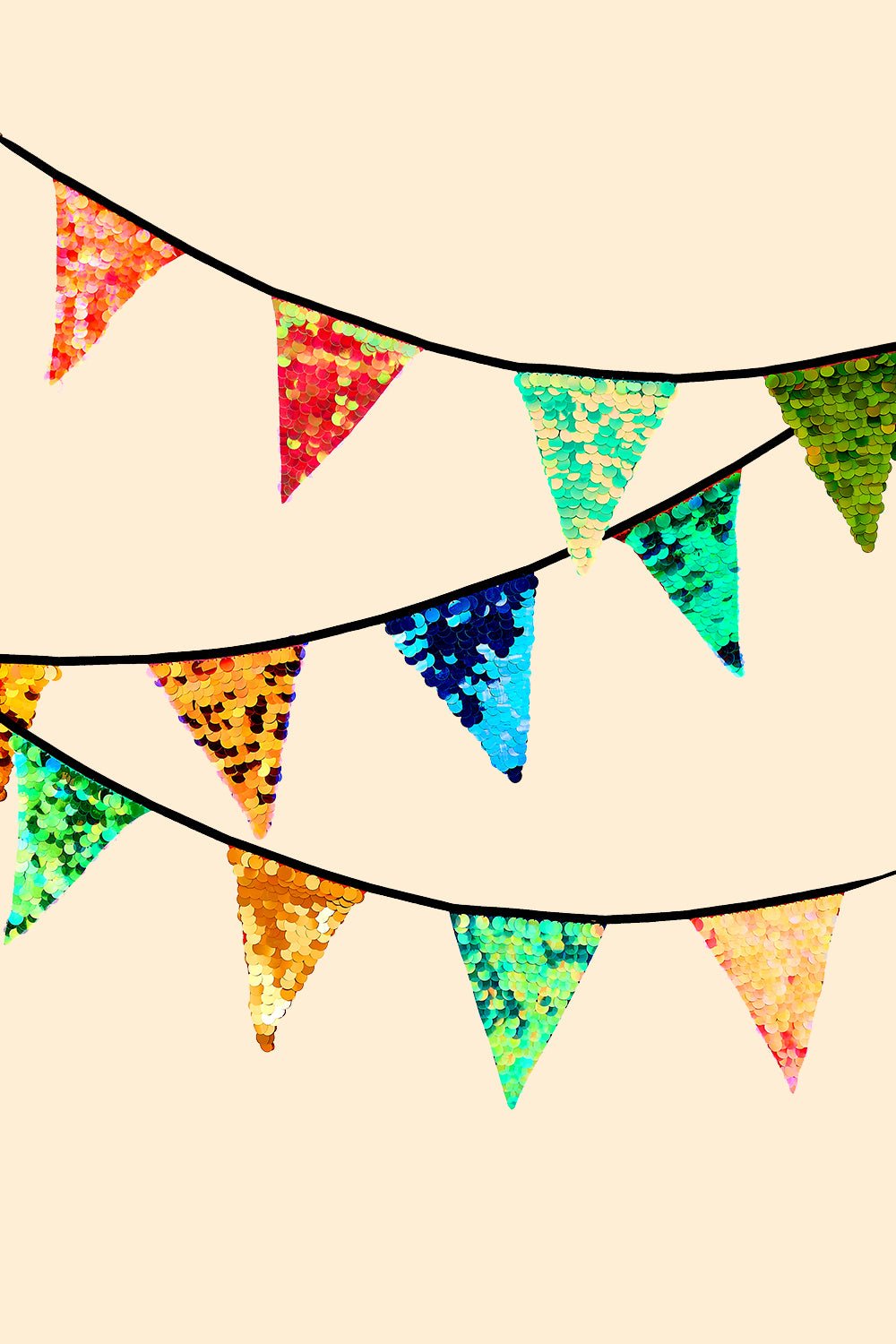 Like our clothes, every sequin on this bunting is individually hand-stitched. Both sides of each triangle are fully embellished.