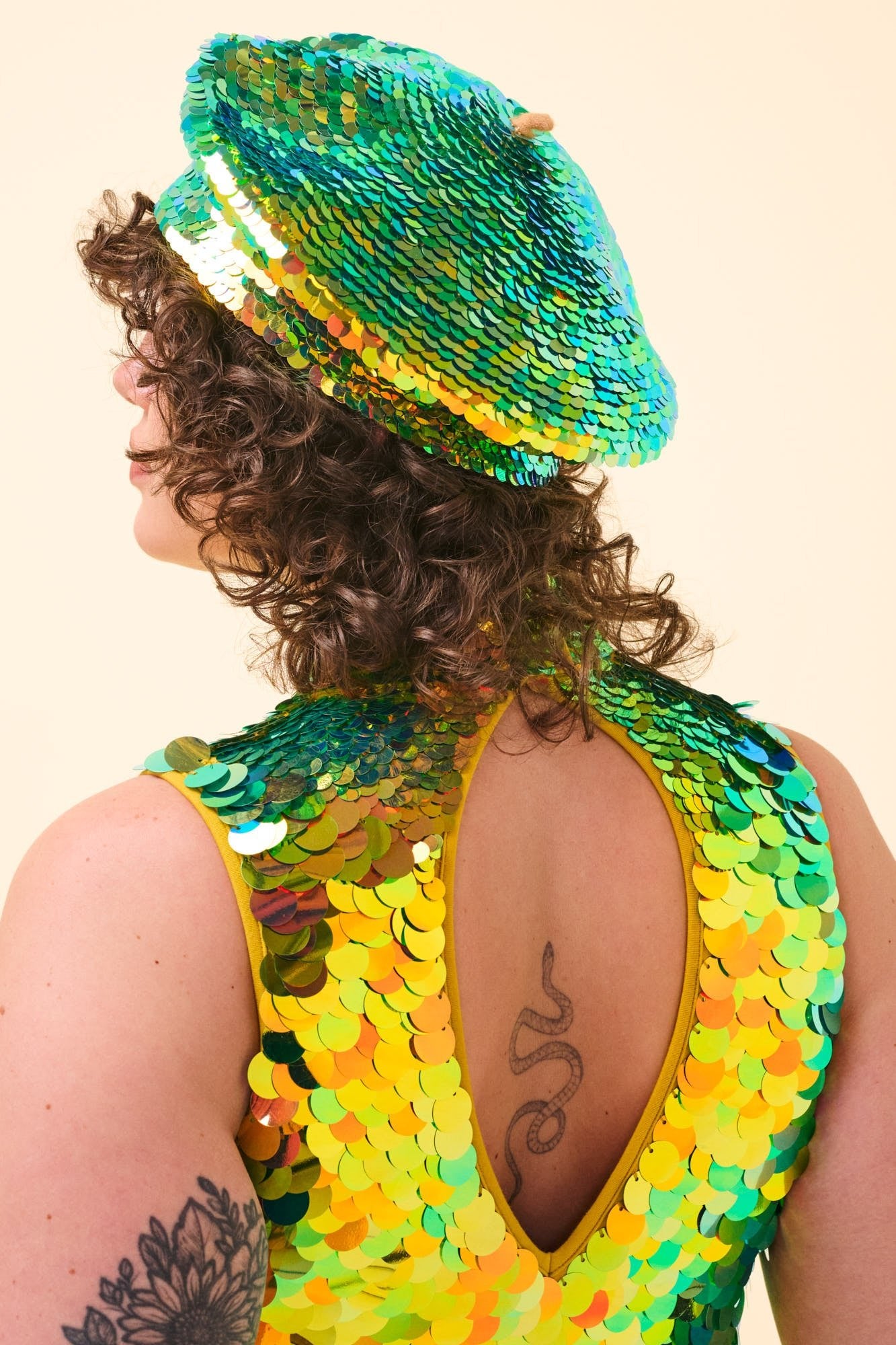 Hundreds of tiny sequins are hand-stitched onto the most timeless hat style of them all. The result: the ultimate beret.